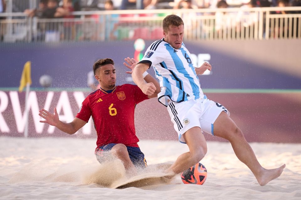 El seleccionado argentino de fútbol playa terminó este lunes su participación en la Copa del Mundo, que se desarrolla en Dubai, Emiratos Árabes Unidos, con una ajustada victoria ante España por 5 a 4, por el grupo B del torneo.