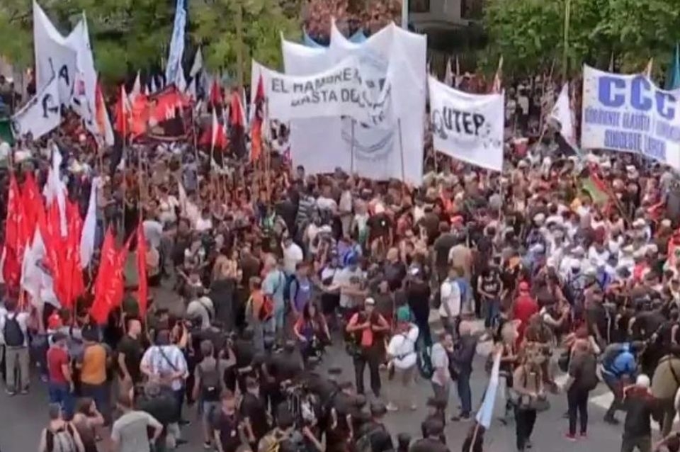 “Pueden pasar los autos. Estamos defendiendo el derecho a la manifestación. Es una movilización alrededor de lo de la señora (ministra de Capital Humano, Sandra) Pettovello para que nos explique por qué le cortó la comida a 45 mil comedores populares”, sostuvo el líder del Polo Obrero, Eduardo Belliboni.