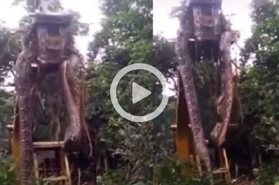 Una anaconda que pesa 449 kilos y mide 10,4 metros de largo fue levantada por una retroexcavadora con sus pinzas en Brasil.
