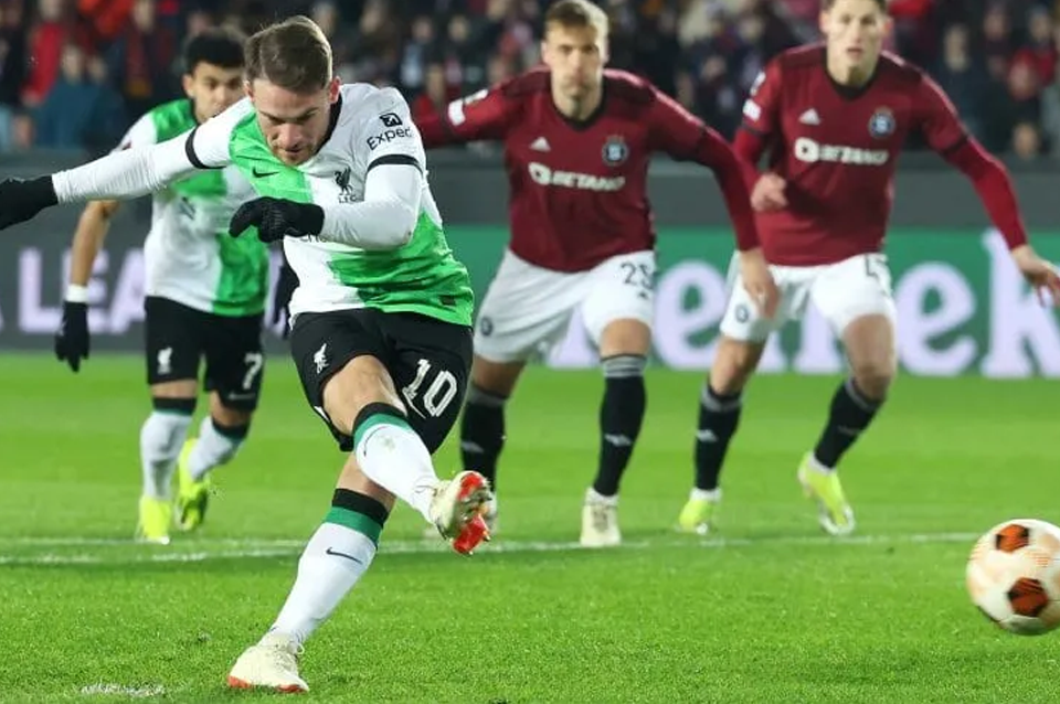 Alexis Mac Allister abrió la cuenta en la paliza de Liverpool 5-1 ante Sparta Praga en República Checa por el partido de ida de los octavos de final de la Europa League tras la ejecución de un penal que le habían cometido a él mismo a los cinco minutos y después asistió a Darwin Núñez para el tercero.