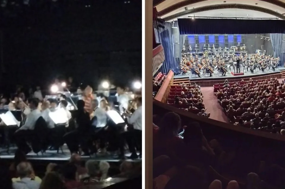 La velada tomó un giro inesperado cuando el apagón dejó a una amplia porción de la provincia sumida en la oscuridad. Pero la Sinfónica no se detuvo. Gracias al “trabajo en equipo”, el concierto continuó con luces individuales en los atriles y la ayuda del público para iluminar las partituras.