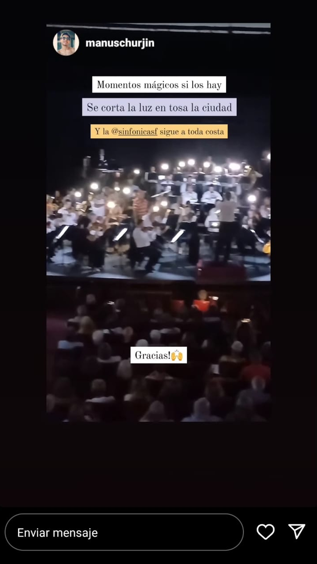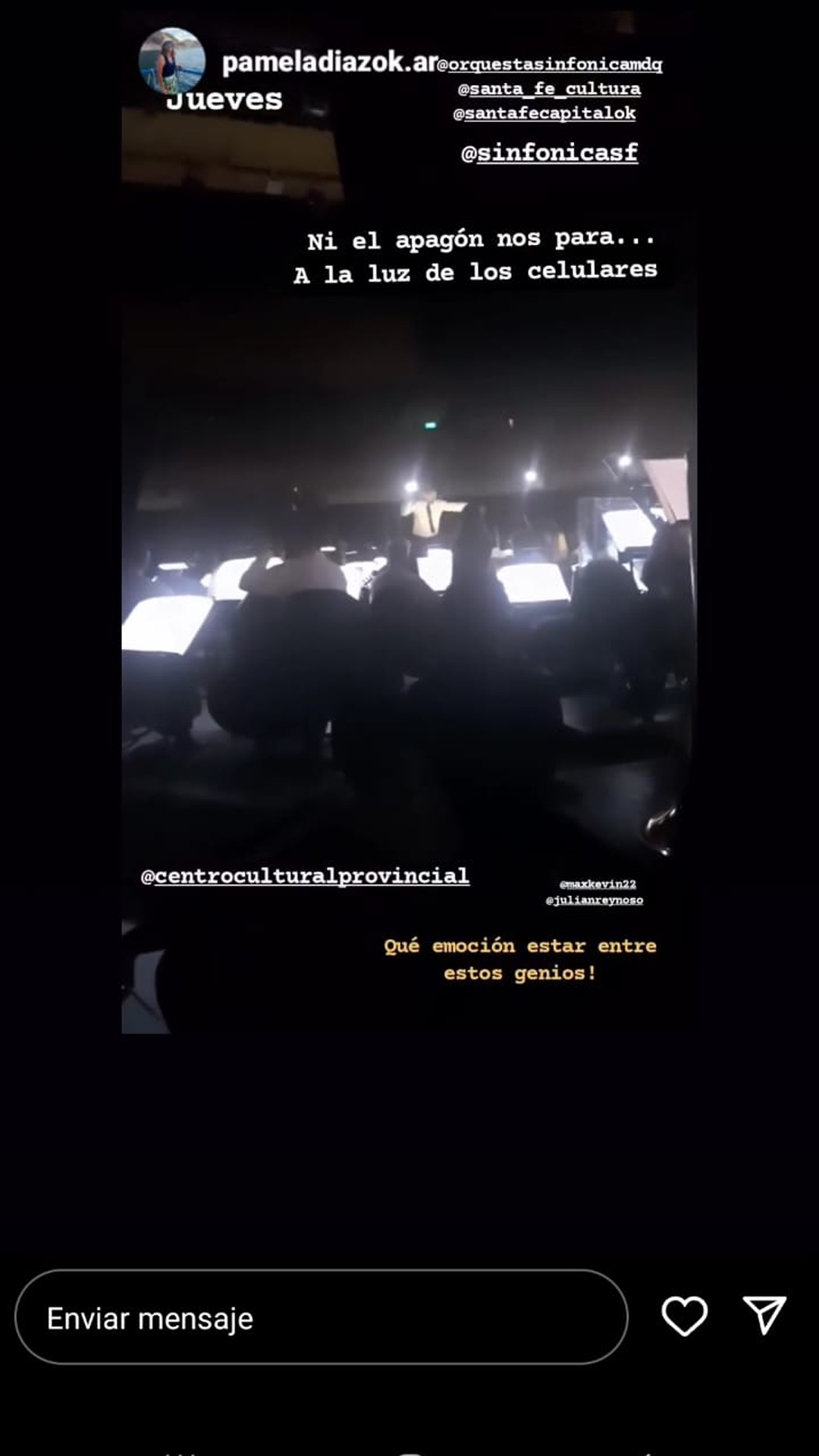 La Sinfónica de Santa Fe brindaba un show, se cortó la luz y fue iluminado por los presentes
