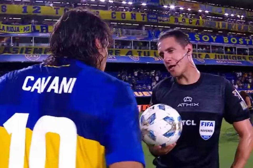 El árbitro Pablo Echavarría sorprendió al pedirle la camiseta al delantero uruguayo Edinson Cavani tras la victoria de Boca frente a Racing por la Copa de la Liga y luego de elogiar su gol de cabeza para permitirle a su equipo volver a pasar al frente en el marcador.