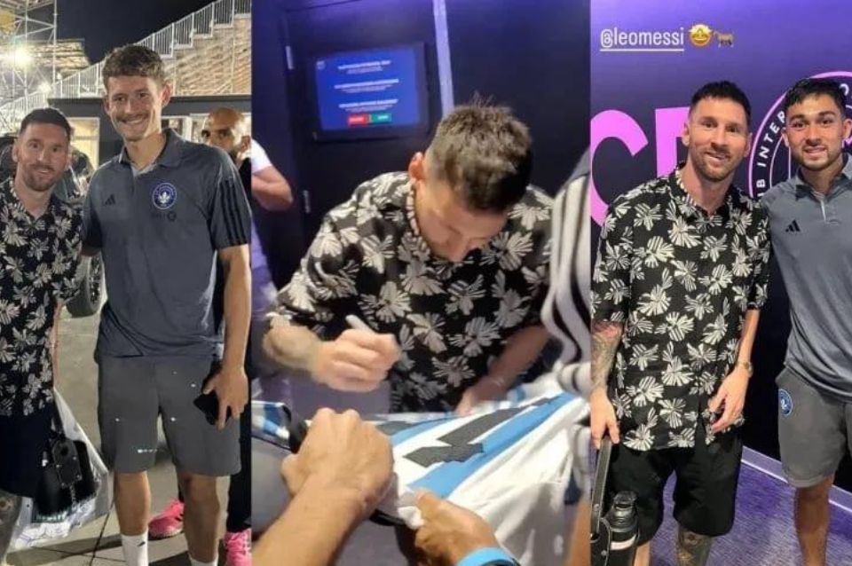 Antes de pensar en ese partido, Inter Miami sufrió la pérdida del invicto en la MLS con el 2-3 como local ante Montreal. Leo lo vio desde la tribuna junto a su pareja, Antonela Roccuzzo, y luego fue a los vestuarios. Allí, lo esperaban los jugadores rivales para llevarse un recuerdo del capitán. Además de las fotos, uno logró algo especial: Mathieu Choinière, canadiense, logró que Leo le firmase una camiseta de la Selección Argentina.