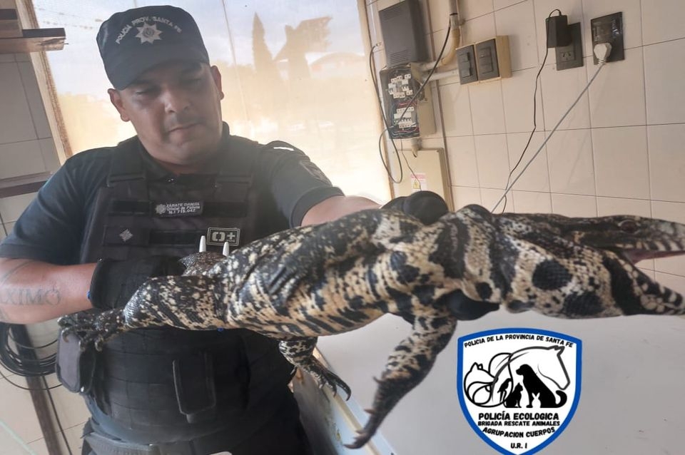 En este caso, la iguana o lagarto overo era de gran tamaño y se desconoce como llegó hasta el lugar.