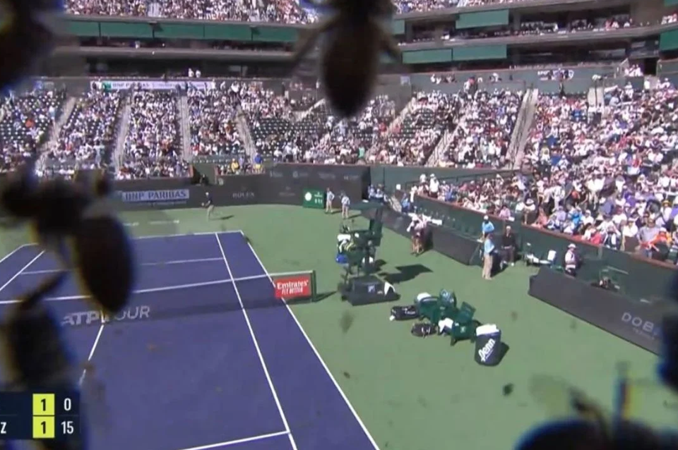 Ni los triunfos de Carlos Alcaraz (2) ni Jannik Sinner (3) en cuartos de final pudieron eclipsar a las grandes estrellas de la jornada este jueves en Indian Wells: las abejas que invadieron la pista central y obligó a detener el duelo que protagonizó el español ante Alexander Zverev (6) durante casi dos horas.