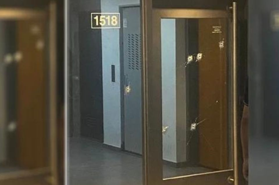 Luego, los peritos constataron que fueron nueve balazos, que impactaron en la puerta de acceso al edificio y también en los vidrios blindex del mismo.