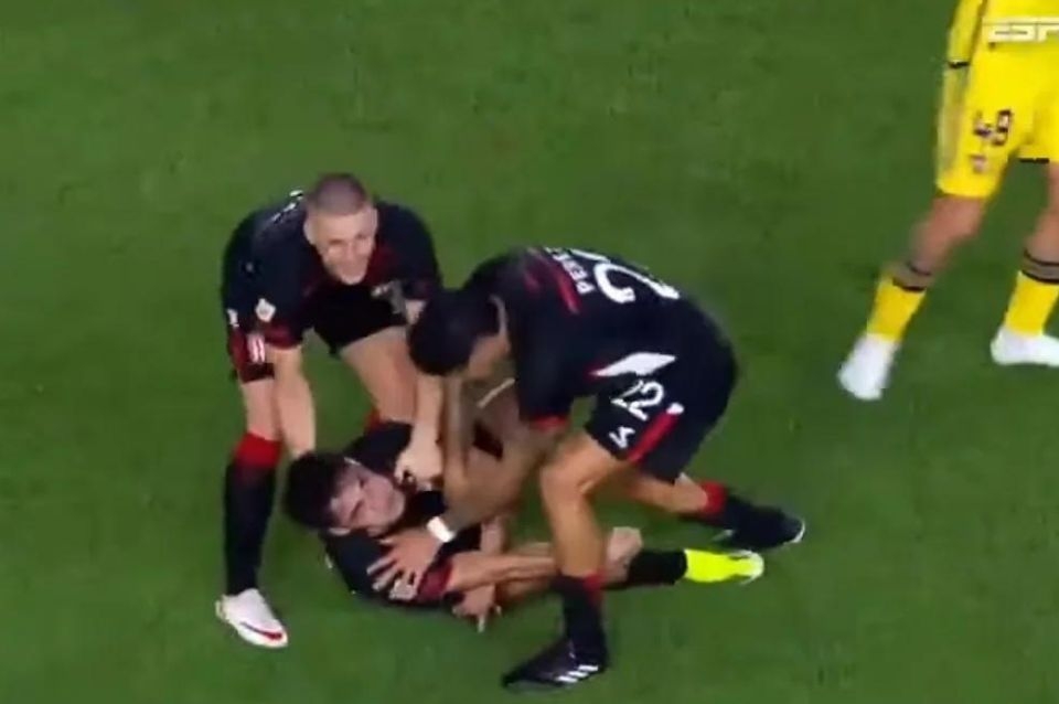 Minutos después la ambulancia tuvo que ingresar a la cancha para asistir de la mejor manera al futbolista que estaba lejos de seguir el partido.