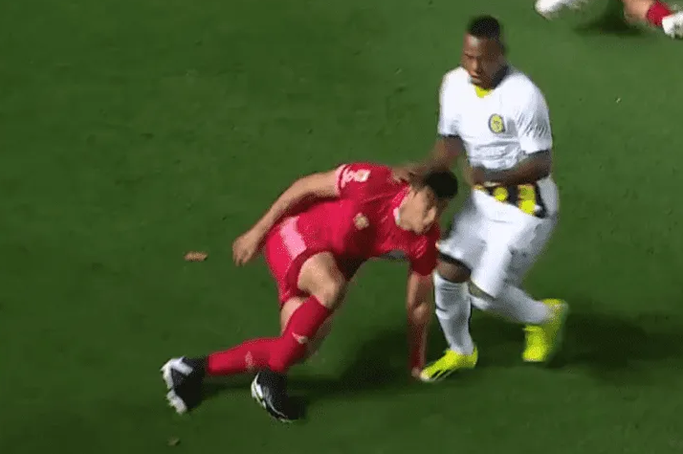 El zaguero del Bicho se tiró a barrer en el sector derecho de la defensa, se llevó puesto a su compañero Thiago Santamaría y el colombiano Jamilton Campaz, en su afán por recuperar la pelota, le clavó los tapones en su mano izquierda.