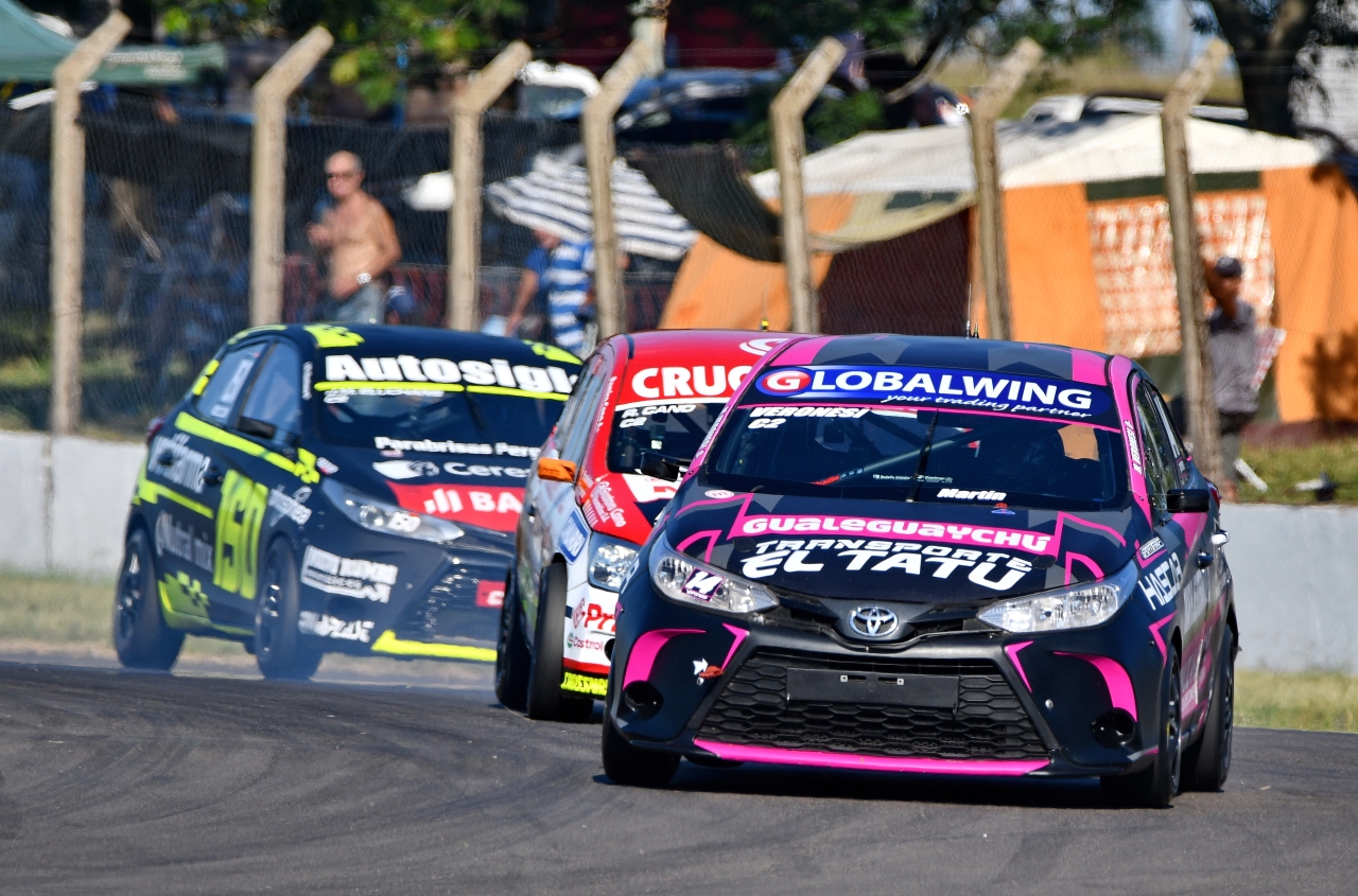 Desde las primeras vueltas de disputa, la constante defensa ejercida por Marco Veronesi pintaba de cuerpo entero el rendimiento y las intenciones propuestas por Ramiro Cano, quien en la horquilla previa al ingreso de la recta principal pudo colocar por primera vez a la par su VW Gol Trend respecto al Toyota Yaris atendido por GR Competición.