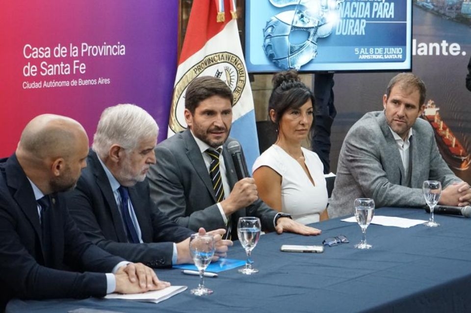 El gobernador Maximiliano Pullaro y el ministro de Desarrollo Productivo, Gustavo Puccini, presentaron en Buenos Aires la edición número 30 de la feria AgroActiva, que se llevará adelante entre el 5 y el 8 de junio en Armstrong, departamento Belgrano. El acto se realizó en el hall central de la Casa de Santa Fe, donde Pullaro expresó que “nos honra que esta exposición se lleve a cabo en Santa Fe, que es campo, industria y comercio”, y agradeció la presencia de autoridades nacionales, provinciales, locales, empresarios y expositores que acompañan el desarrollo de la muestra, especialmente la del secretario de Bioeconomía de la Nación, Fernando Vilella, “porque es un aliado de la provincia, y muestra que en Argentina hay, y debe haber más, políticas de Estado que defiendan al interior productivo”.