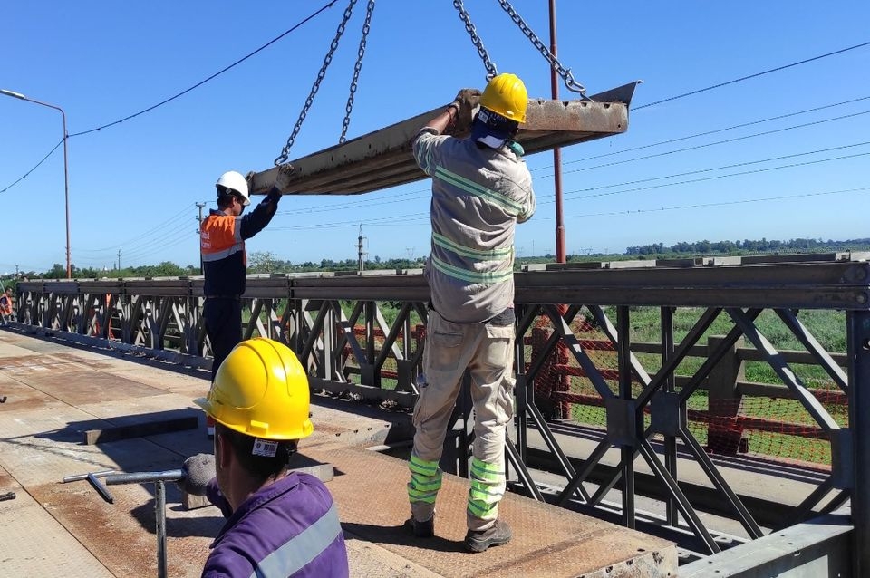 De este modo quedó liberado el sector de trabajos con la posibilidad de paso con precaución de motos y bicicletas a ambos lados entre la estructura metálica y la vereda del Puente Carretero. Para facilitar el movimiento se colocó señalamiento preventivo, jen la zona mientras que en el campamento La Guardia se preparaba el material de suelo con agregado de cemento y piedra a utilizar.
