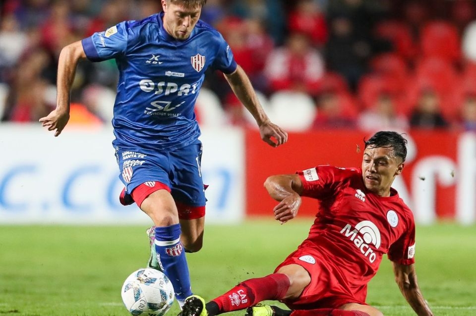 Aunque Unión no quería tirar la toalla antes tiempo y minutos después alcanzó el descuento con un zapatazo de Bruno Pittón para que el partido gane en intensidad y adrenalina. Un constante ida y vuelta, con un Celeste que igual era un problema en cada contra. Kily pedió orden en todo momento, pero el duelo estaba partido producto del empuje con pocas ideas de Unión y el conformismo del visitante. Así se terminaron los primeros 45'.