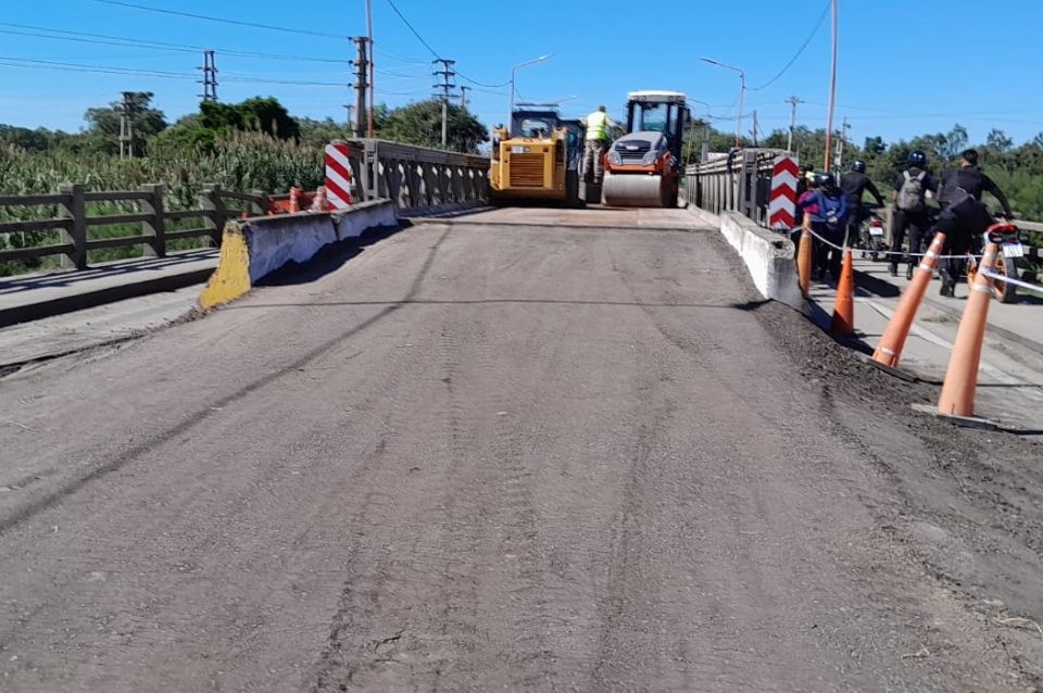 Vialidad Nacional culminó los trabajos previstos para hoy en la conformación de las rampas de acceso al puente de emergencia metálico sobre el Puente Carretero entre Santa Fe y Santo Tomé.