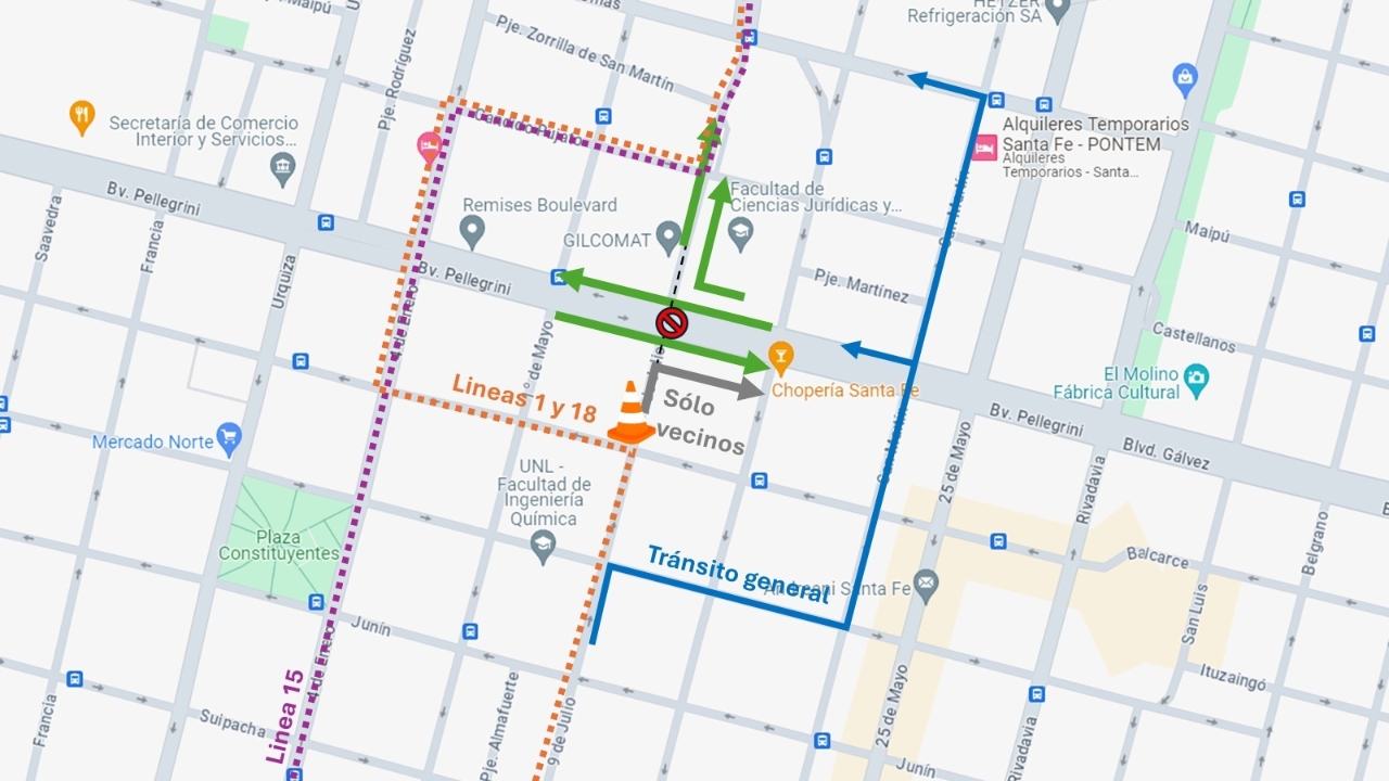 La circulación sobre Boulevard Pellegrini seguirá habilitada pero con calzada reducida.