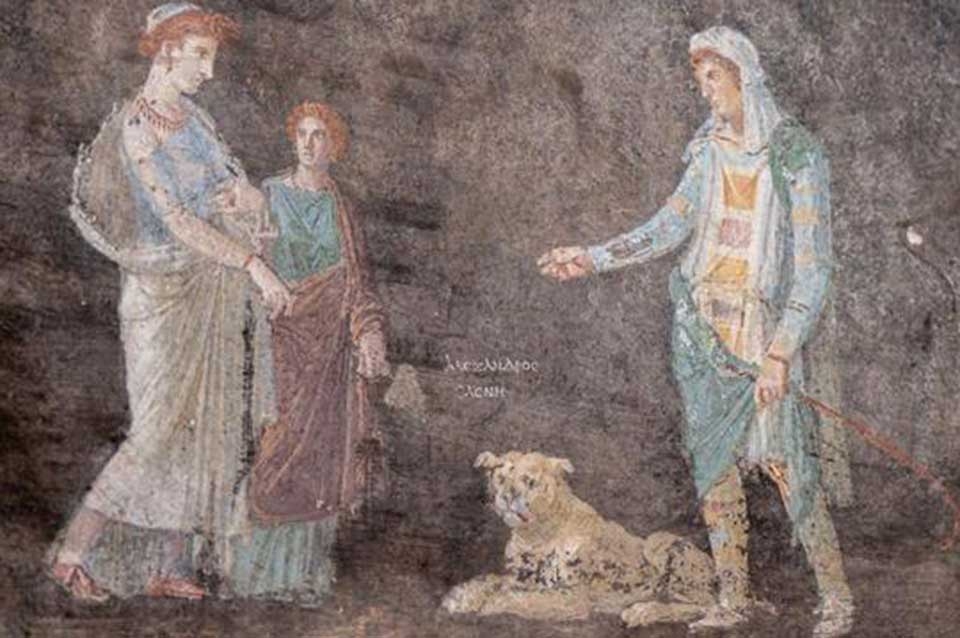 El excelente estado de conservación permite localizar "además de Helena y Paris, indicadas en una inscripción griega entre las dos figuras con su otro nombre 'Alejandro' y en las paredes de la sala aparece la figura de Casandra, hija de Príamo, emparejada con Apolo".