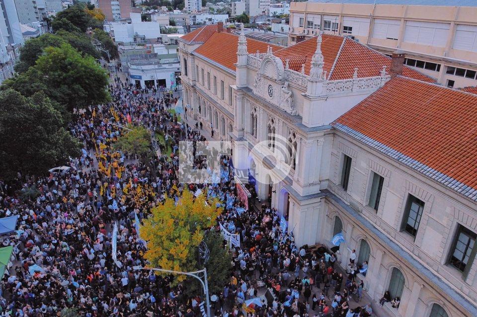 El último en hacer uso de la palabra fue el rector de la UNL Enrique Mammarella, quien destacó que no es una marcha contra nadie sino a favor de la universidad pública.