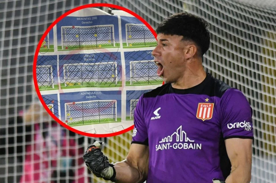 El arquero de Estudiantes tuvo consigo un ayudamemoria gráfico que mostraba cada una de las ejecuciones anteriores de los posibles pateadores. El detalle en los penales de Cavani y Zenón.