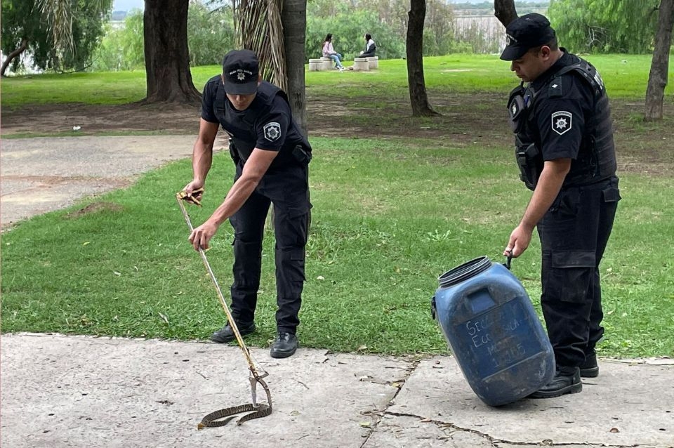 Este miércoles por la tarde, personal de la Policía Ecológica asistieron a un llamado por la presencia de una serpiente en inmediaciones de la Costanera Oeste de Santa Fe.