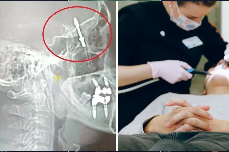 Por esta razón, el odontólogo le recomendó que, luego de la intervención, se pusiera implantes para reemplazarlos. Sin embargo, durante la cirugía, el intento por forzar la colocación de una de las piezas provocó algo impensado: el tornillo le perforó la mandíbula y llegó hasta su cráneo.