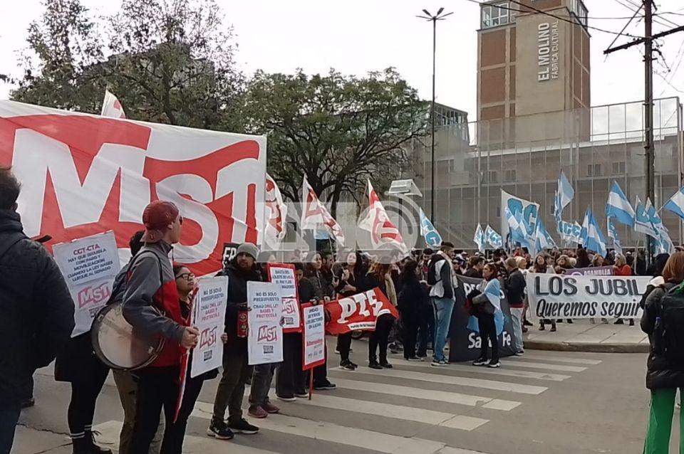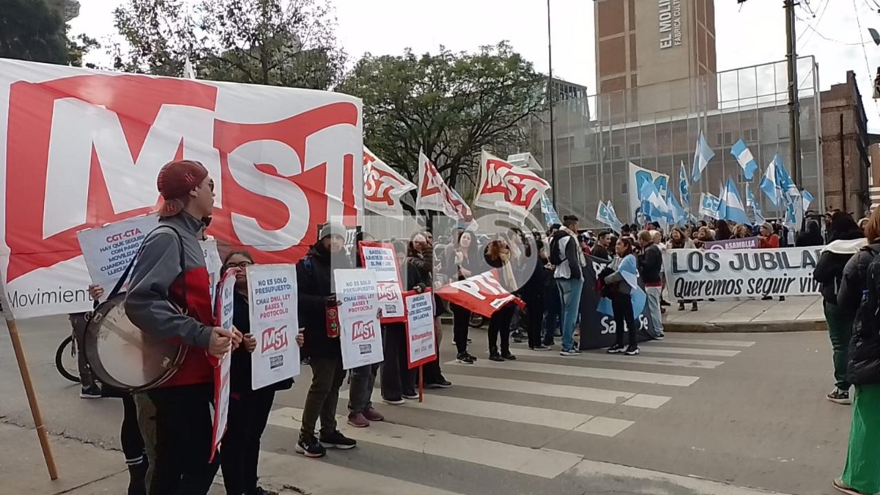 Distintas organizaciones sociales se reunieron en la esquina de Boulevard y Pedro Vittori, frente al Molino.Fábrica Cultural, para realizar un ruidazo en protesta al gobierno nacional de Javier Milei y sus medidas.