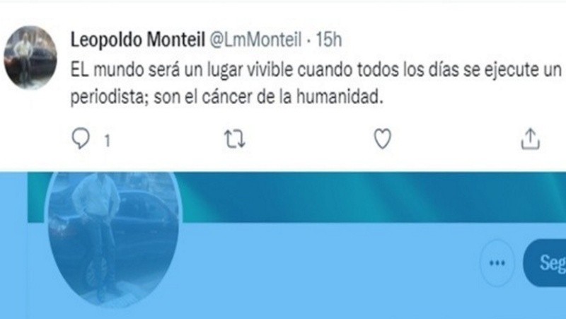 El abogado Leopoldo Monteil fue suspendido por seis meses por la Justicia rosarina por haber escrito en redes sociales que “el mundo será un lugar vivible cuando todos los días se ejecute un periodista; son el cáncer de la humanidad”.