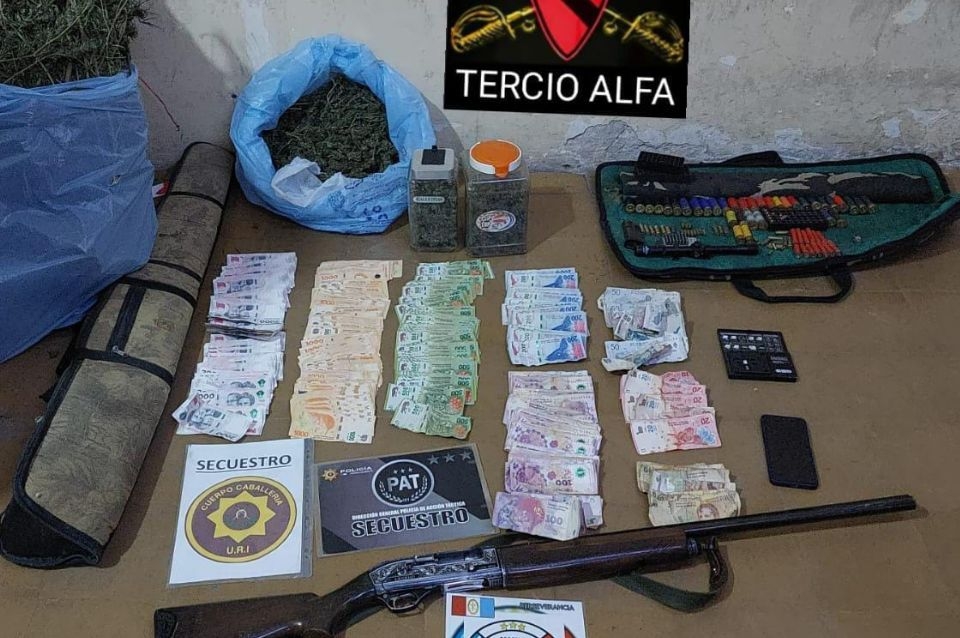 Luego de revisar el inmueble, secuestraron frascos con aparente estupefacientes, una balanza de precisión, un teléfono, una escopeta, cartuchos, cargador, una mira telescópica y más de 600.000 pesos.