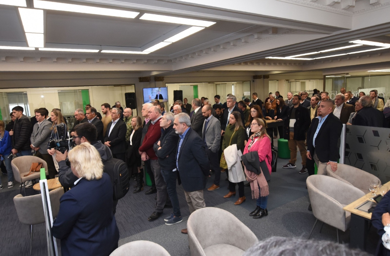 El flamante Centro de Negocios fue inaugurado por Luis Núñez, Gerente General del Banco Santa Fe y por los ministros provinciales de Economía, Pablo Olivares, y de Desarrollo Productivo, Gustavo Puccini. El acto contó también con la presencia de Rosario Alemán, Secretaria de Producción y Empleo de la Ciudad de Santa Fe (en representación del intendente Juan Pablo Poletti, quien se encontraba en Buenos Aires), de Fernando González, Gerente Corporativo de Banca Mayorista de Banco Santa Fe, y de Fernando Baracat, Gerente de Banca Mayorista de Banco Santa Fe, junto a cámaras empresarias, comerciantes, productores, clientes e invitados especiales.