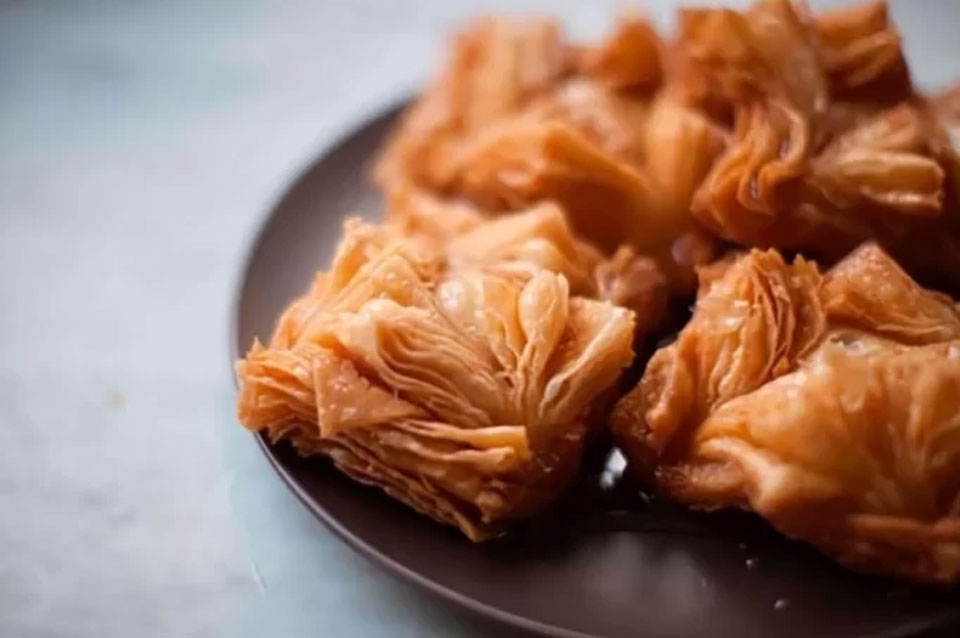 - Colocar un trozo de dulce (batata o membrillo, lo que se prefiera) en un cuadradito de masa, pintar por el borde con agua como una empanada, y colocar con otro cuadradito de masa en diagonal. Cerrar pellizcando las esquinas.