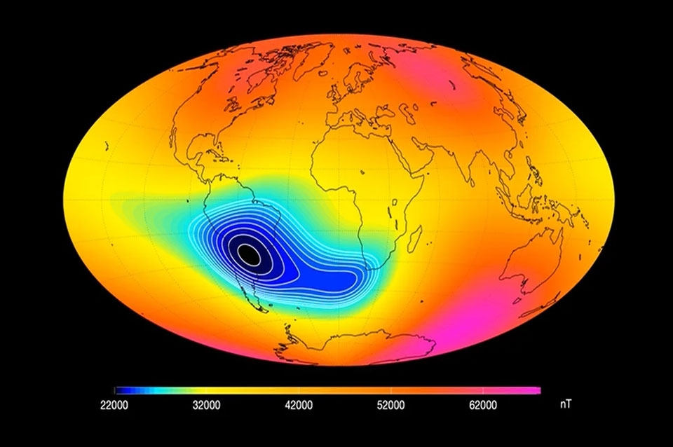 Esta es "un comportamiento atípico en el campo magnético terrestre. Justo encima de América Latina se aprecia una región amplia que se ha debilitado", según expertos.