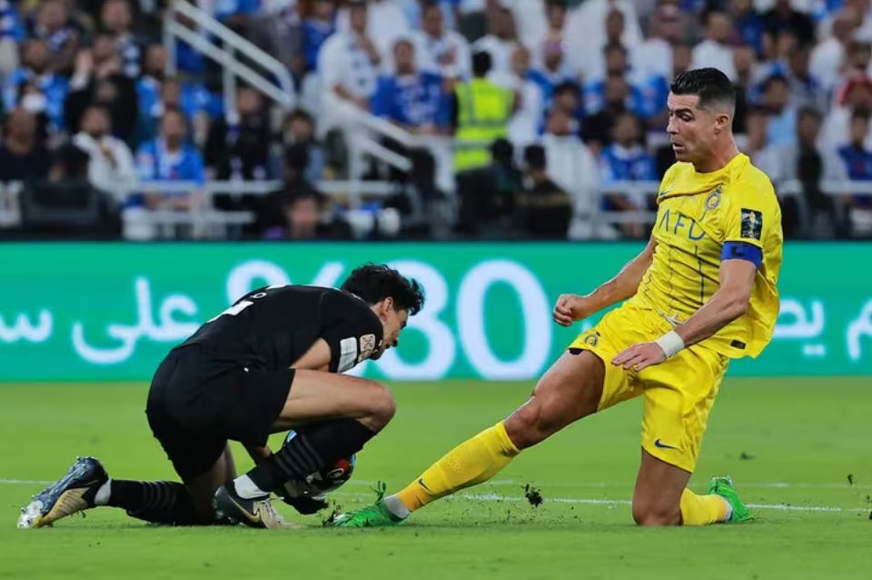 La figura de Bono empezó a marcar la cancha del King Abdullah Sports City a los 34 minutos, cuando le tapó un mano a mano crucial al ex punta del Real Madrid con el resultado ya 1-0 en favor de Al Hilal por el tanto de Aleksandar Mitrović. Pocos instantes después, el ex portero del Sevilla se estiró contra su palo izquierdo para rechazar un disparo de CR7 realizado desde un costado.