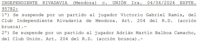 La AFA oficializó las sanciones para Bruno Pittón y Adrián Balboa en Unión