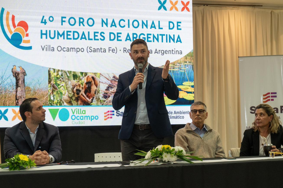 El Ministro de Ambiente y Cambio Climático, Enrique Estévez, participó del 4to Foro Nacional de Humedales, celebrado los días 6 y 7 de junio en Villa Ocampo. Este evento, único en su tipo, tiene como objetivo principal debatir y compartir experiencias sobre la usos y la conservación de los humedales. Participaron del mismo representantes de distintas organizaciones no gubernamentales, profesionales, periodistas, funcionarios públicos y empresas.