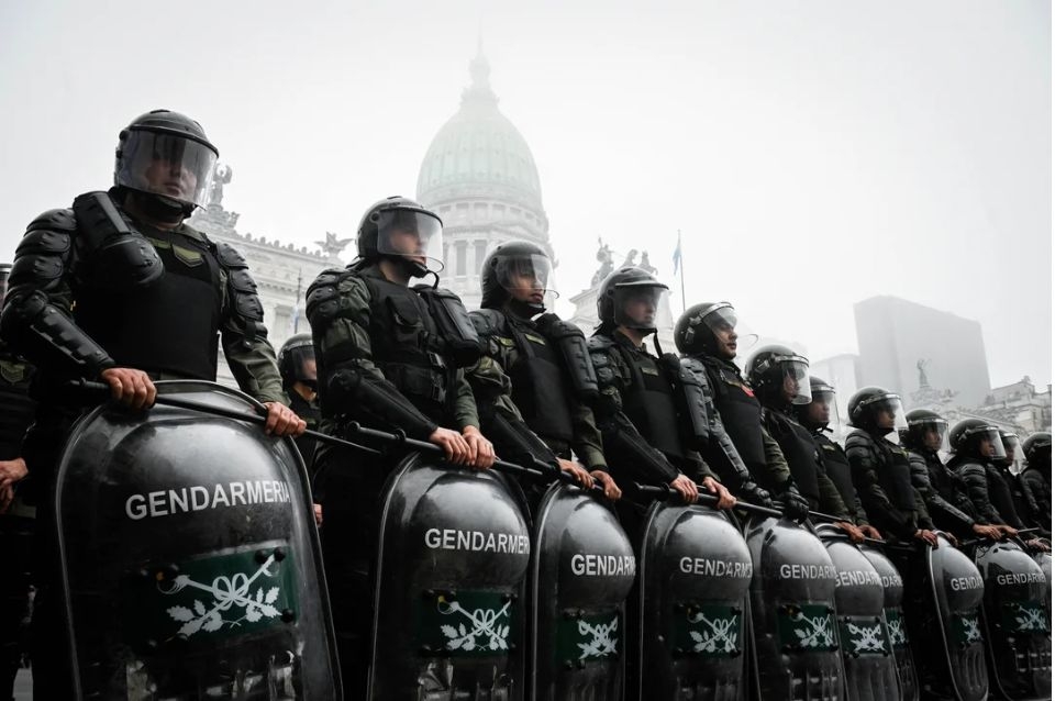 Los efectivos realizaban un doble cordón para rodear el edificio parlamentario y arrojaban gases contra los manifestanes en la intersección de las avenidas Callao y Rivadavia, donde se produjeron forcejeos.