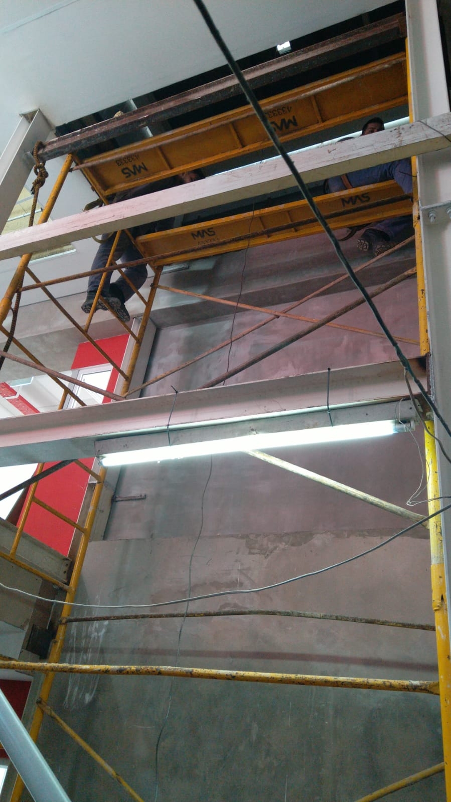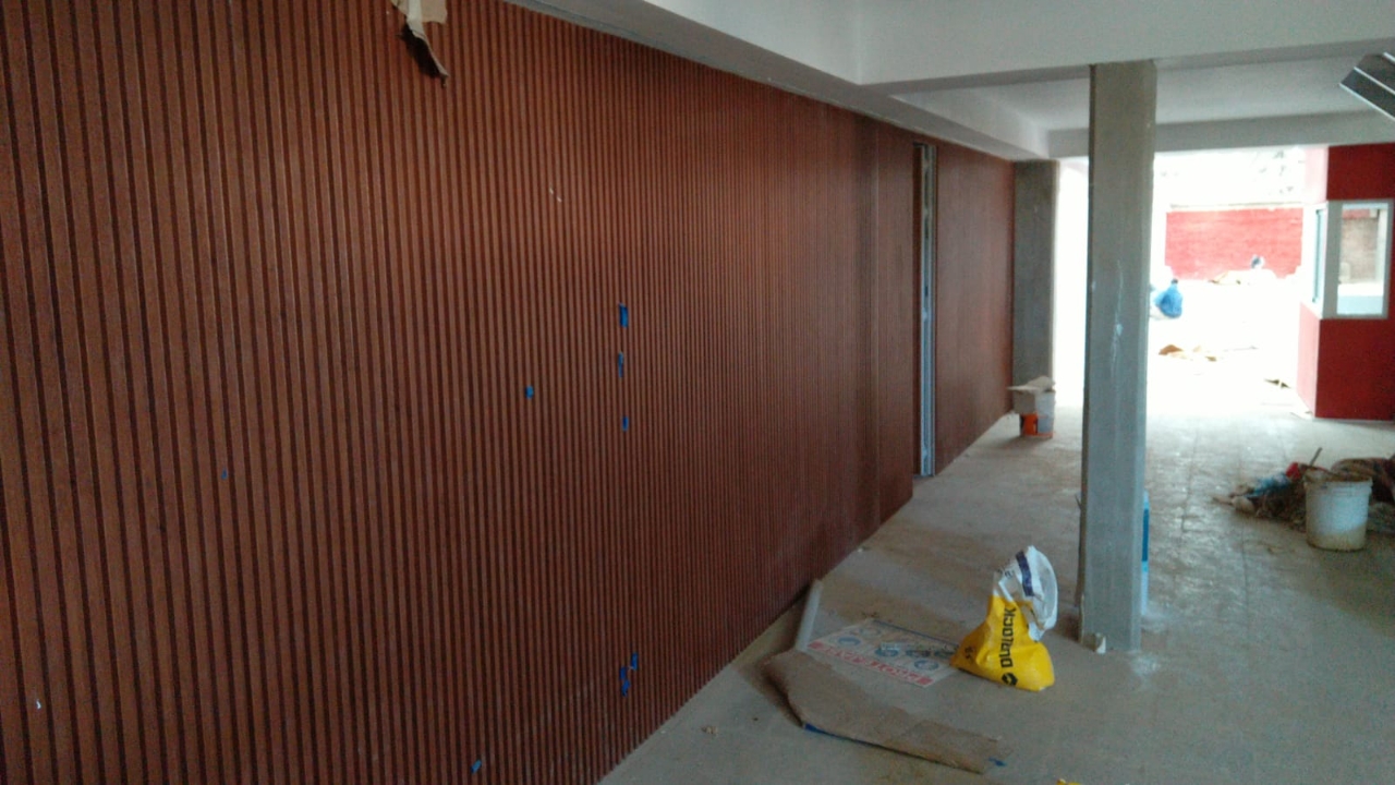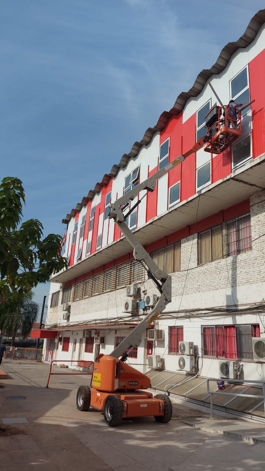 -En el edificio de la sede social se está colocando los tapajuntas de la panelería en contrafachada y terraza.