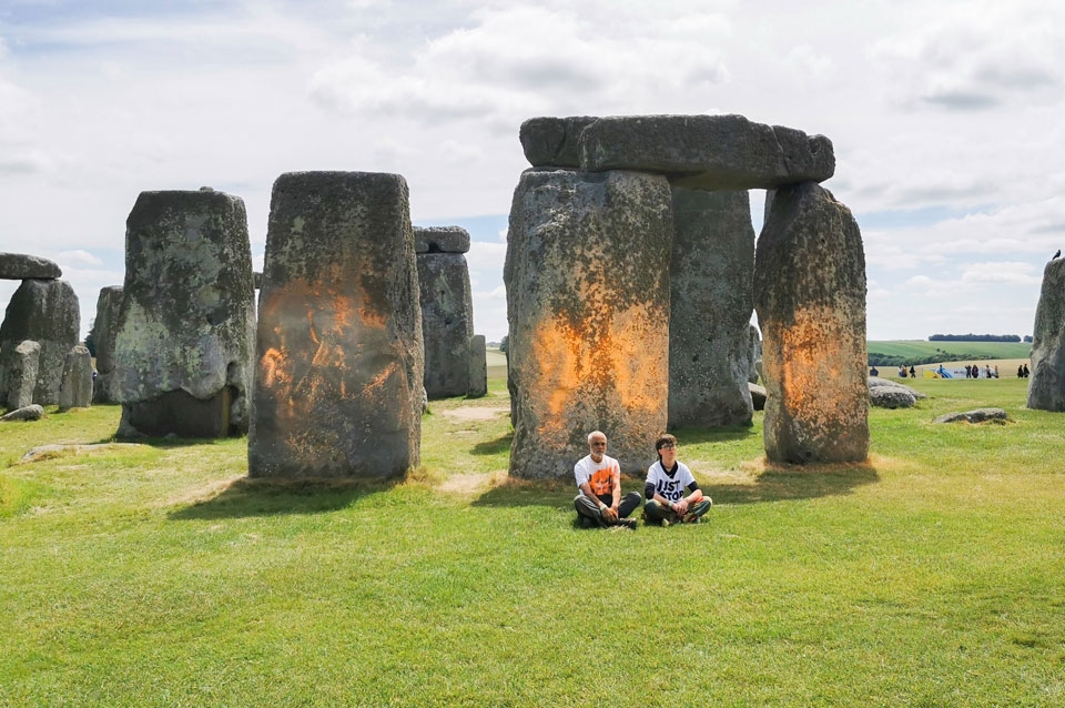 Este 19 de junio dos activistas de Just Stop Oil pintaron el monumento Stonehenge con pintura en polvo de color naranja.