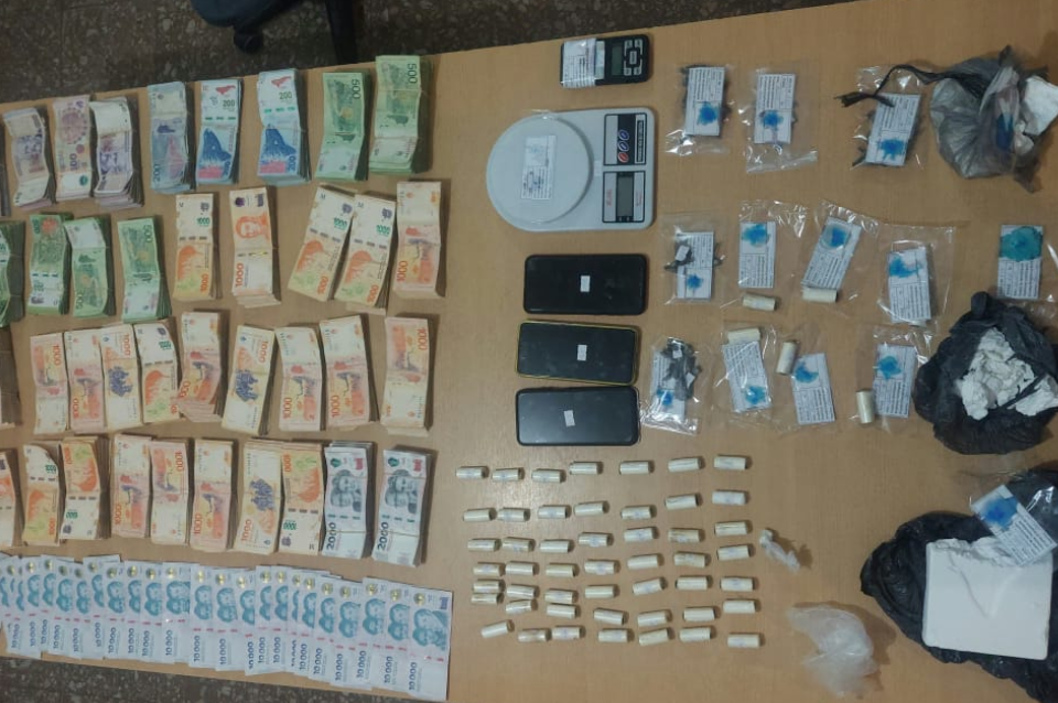 Durante el allanamiento secuestraron dinero en efectivo ($ 3.763.160), clorhidrato de cocaína (1619.7 gramos), recortes de nylon color negros y blancos, tres teléfonos celulares (dos Samsung y un Motorola), anotaciones de interés para la causa, dos balanzas de precisión, bolsos, billeteras y tazas donde se encontraban resguardados estos objetos.