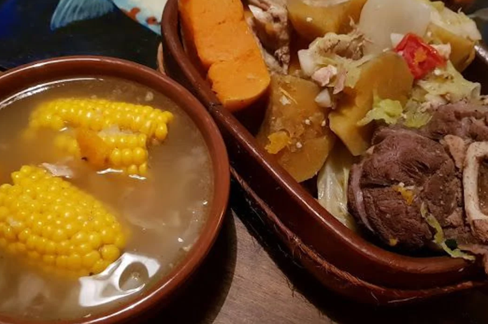 “Un cocido que incluye diversos tipos de carne (generalmente vacuna, pollo y cerdo) y una variedad de vegetales como papas, batatas, zapallo, zanahorias y choclo. Es muy nutritivo y llenador”.