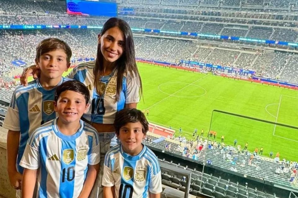 Luego en sus historias compartió una imagen de Thiago, Mateo y Ciro, abrazados con la camiseta de la Selección argentina con el 10 en la espalda, disfrutando de este importante triunfo.