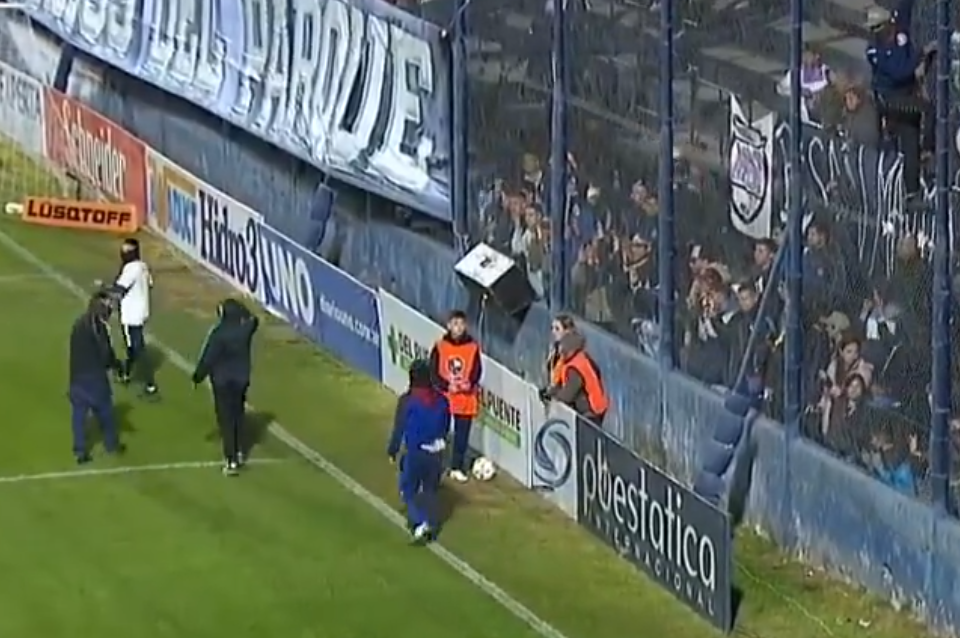 Luego de algunos minutos de haber comenzado la segunda mitad del encuentro, aproximadamente seis hinchas encapuchados de la Lepra Mendocina se metieron a la cancha y demoraron el encuentro.