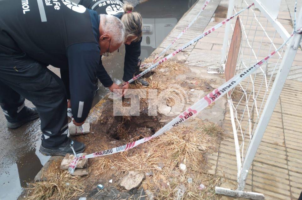 El hecho prendió las alarmas de los vecinos, ya que el hueco está a escasa distancia del gigante socavón que está siendo reparado por Aguas Santafesinas en la intersección de 9 de Julio y Boulevard.