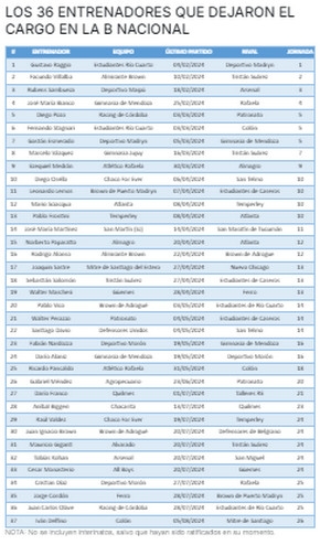 La Primera Nacional es una verdadera trituradora de entrenadores. La categoría tiene 38 equipos participantes divididos en dos zonas de 19 cada una. En las primeras veintiseis jornadas ya se fueron 37 directores técnicos, a razón de más de uno por fecha.
