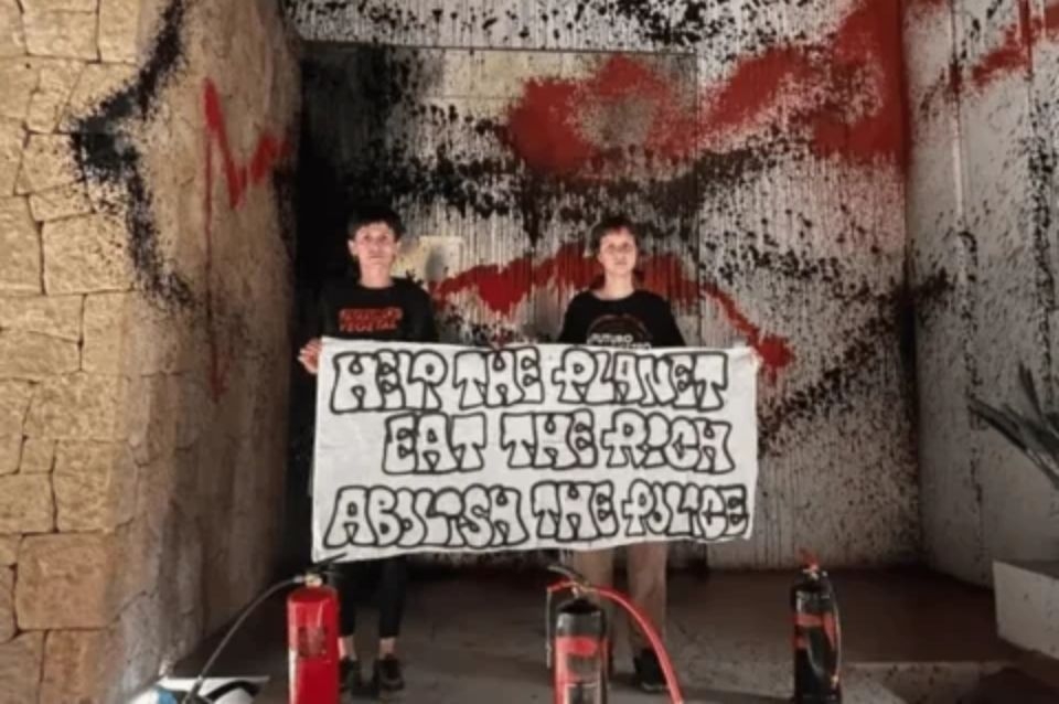 Se trata de la agrupación Futuro Vegetal, cuyos integrantes lograron ingresar a la propiedad y dejaron el siguiente mensaje: “Help the Planet - Eat the Rich - Abolish the Police”' (Ayudar al planeta, comerse a los ricos y abolir la Policía).