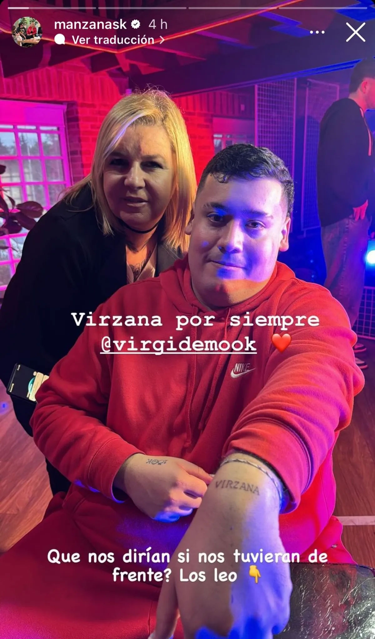 En su brazo, el cantante se tatuó la palabra Virzana, que fue la que sus fanáticos inventaron para llamar a la dupla. "Virzana por siempre @virginiademook. ¿Qué nos dirían si nos tuvieran de frente?", escribió Federico al mostrar el tatuaje.