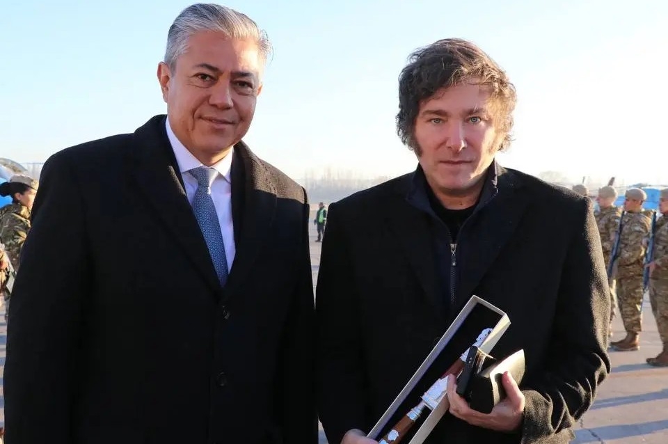 El presidente Javier Milei arribó esta mañana a la provincia de Neuquén, donde fue recibido por el gobernador Rolando Figueroa, quien hizo entrega de un acta de residente ilustre y un cuchillo labrado a modo de obsequio de bienvenida. Tras cumplir agenda, el mandatario visita por primera vez a Chile desde que asumió.