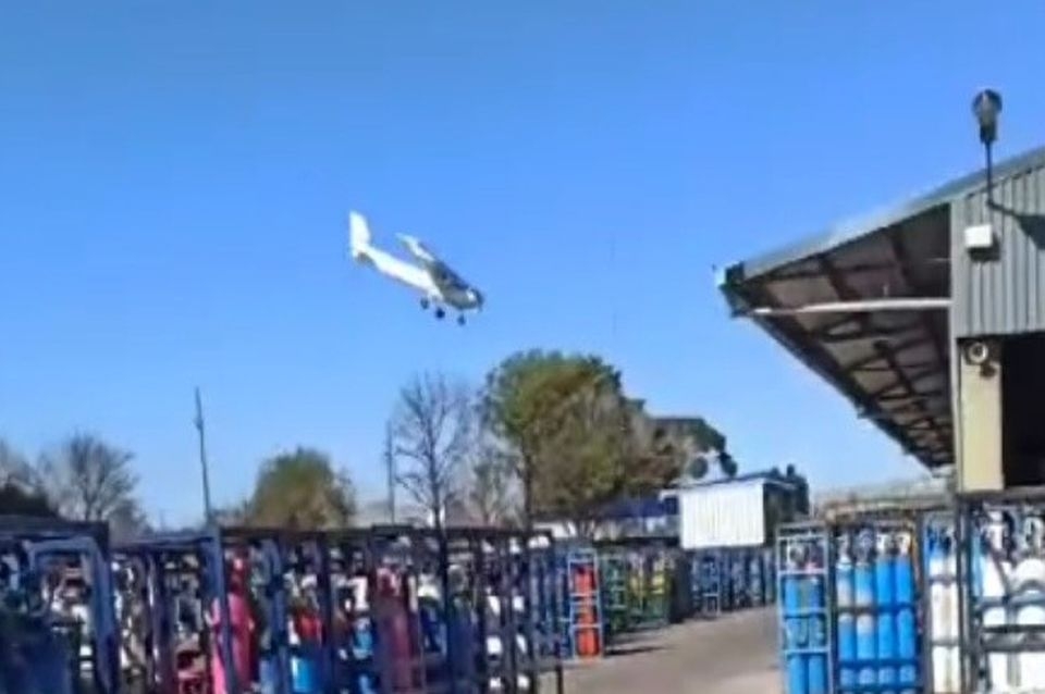 Testigos dijeron haber visto sobrevolar la zona oeste de la ciudad hasta descender de forma abrupta contra las instalaciones de la firma, sin aparentes desperfectos mecánicos.