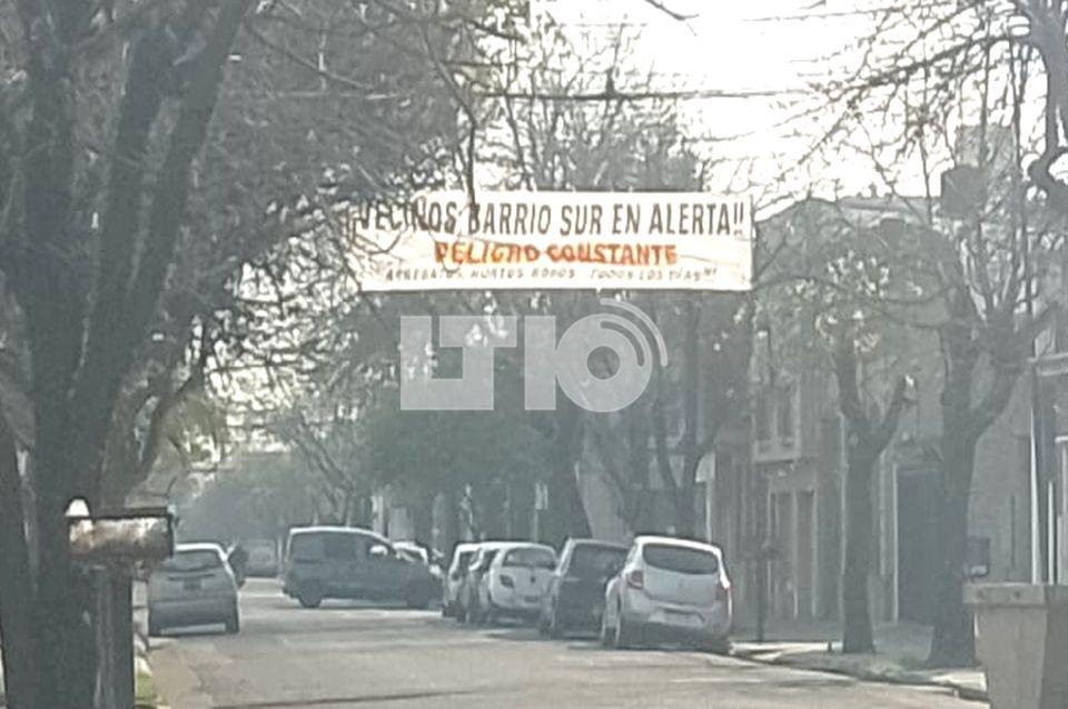 Los vecinos de barrio Sur apelan nuevamente a la colocación de pasacalles para dar aviso de los hechos de inseguridad que se suceden en la zona.
