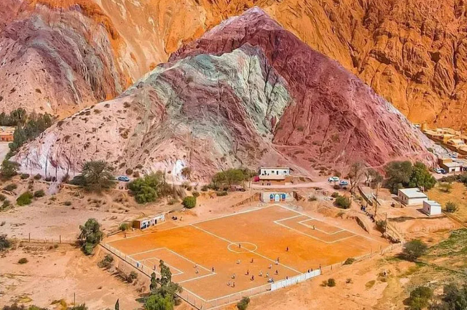 En el norte argentino hay una cancha de fútbol muy pintoresca que fue seleccionada entre las más increíbles del mundo: está ubicada al pie del Cerro de los Siete Colores y rodeada de un entorno natural que la vuelve única en su estilo.