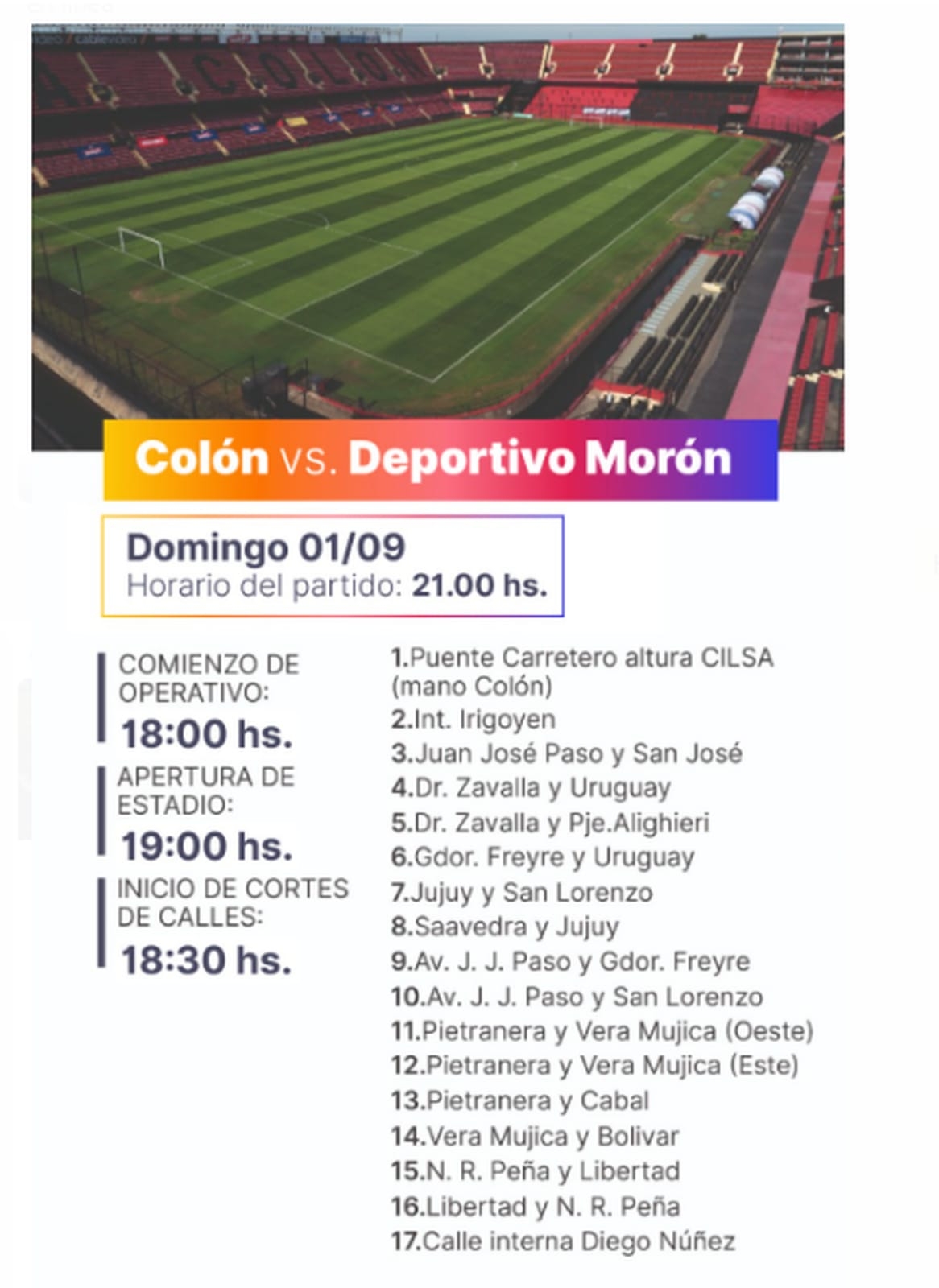 Se viene un nuevo partido crucial para Colón cuando el domingo reciba, desde las 21, con arbitraje de Fabricio Llobet y transmisión de LT10 AM 1020 y FM "X" 103.5, a Deportivo Morón por la 30 fecha de la zona B de la Primera Nacional. Sobre todo, por el apremio de volver a ganar para mantenerse en carrera pr la lucha de arriba.