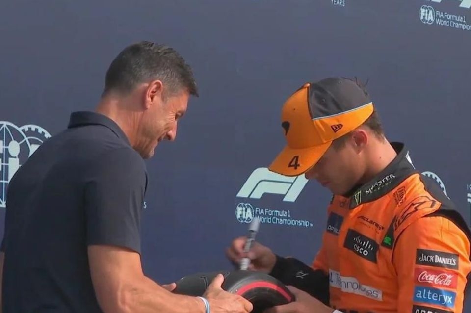 El ídolo del Inter de Milán paseó por las instalaciones del Autodromo Nacional de Monza. En el trayecto de su visita, se cruzó con el automovilista británico Lando Norris.